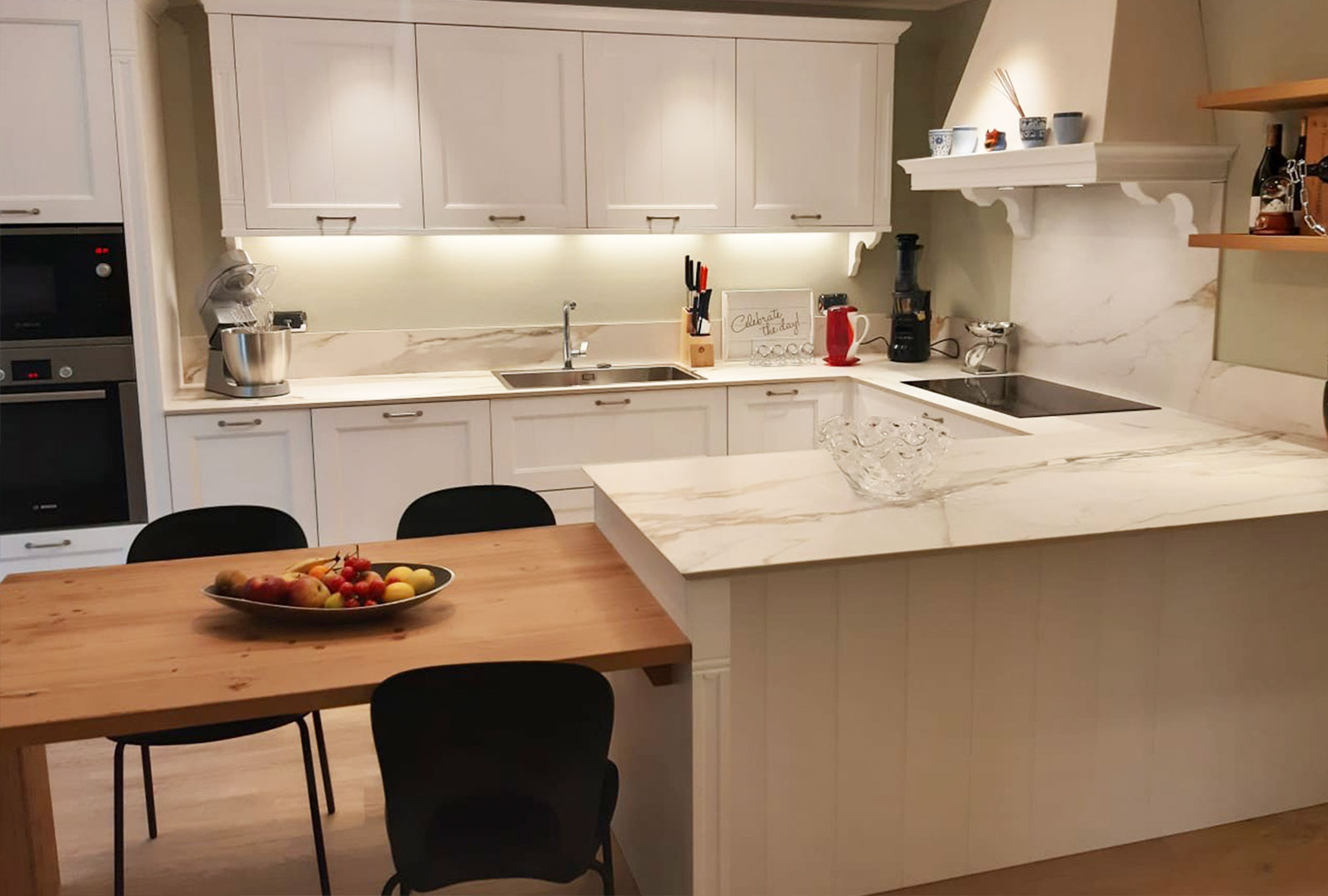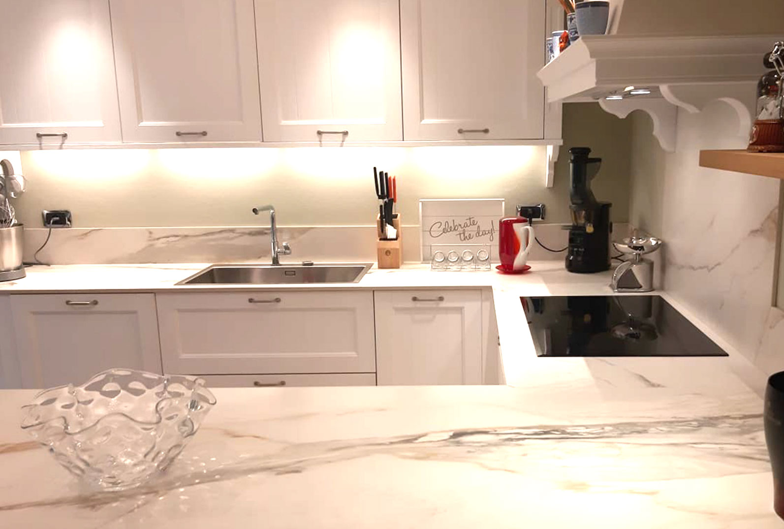 Dea Doccia progetta cucine classiche, contemporanee e moderne, unite a soggiorni e mobili per tutta la casa, grazie all'affidabilità di laboratori artigianali italiani, coniugando il gusto estetico e la scelta dei materiali, dal melaminico al legno, fino alle particolari proposte in gres porcellanato, veri e propri progetti sartoriali con elegantissime lastre rifinite a misura.